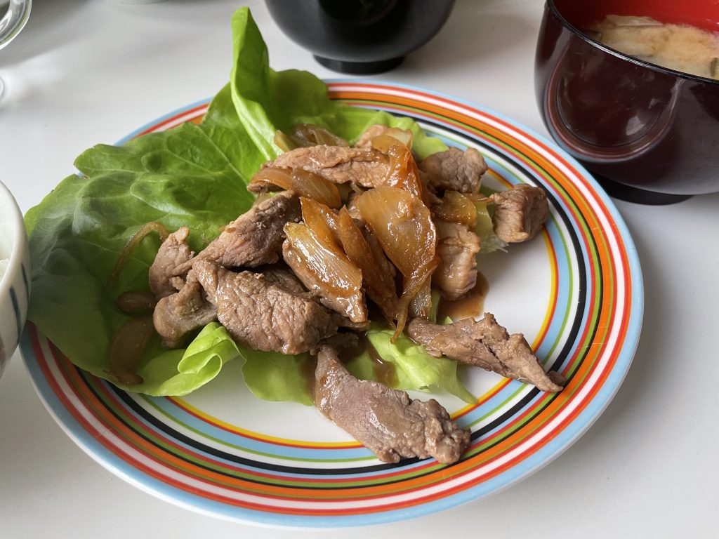 普段の献立も少しポップになるのがオリゴ オレンジの魅力。ただ肉を炒めた料理をのせただけなのに、食卓が明るい雰囲気に
