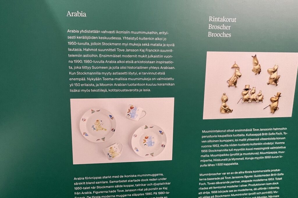 ムーミンコラボグッズのパネル展示。ムーミンとARABIAコラボは1950年からと長い歴史を感じます。